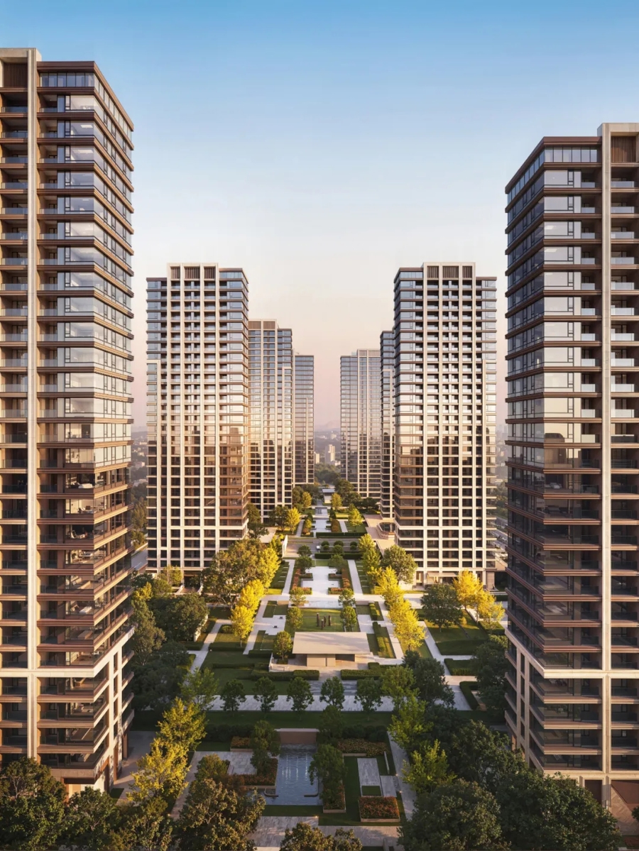 项目在建筑设计上,融合海派装饰艺术风格,采用8栋住宅楼对称均匀布局。中海地产还将代建项目南侧近4000㎡的街心公园,与小区衔接,并结合公园打造约全市首个“玖系”会所,内含健身、泳池、私宴、茶室及下沉庭院等多功能空间。